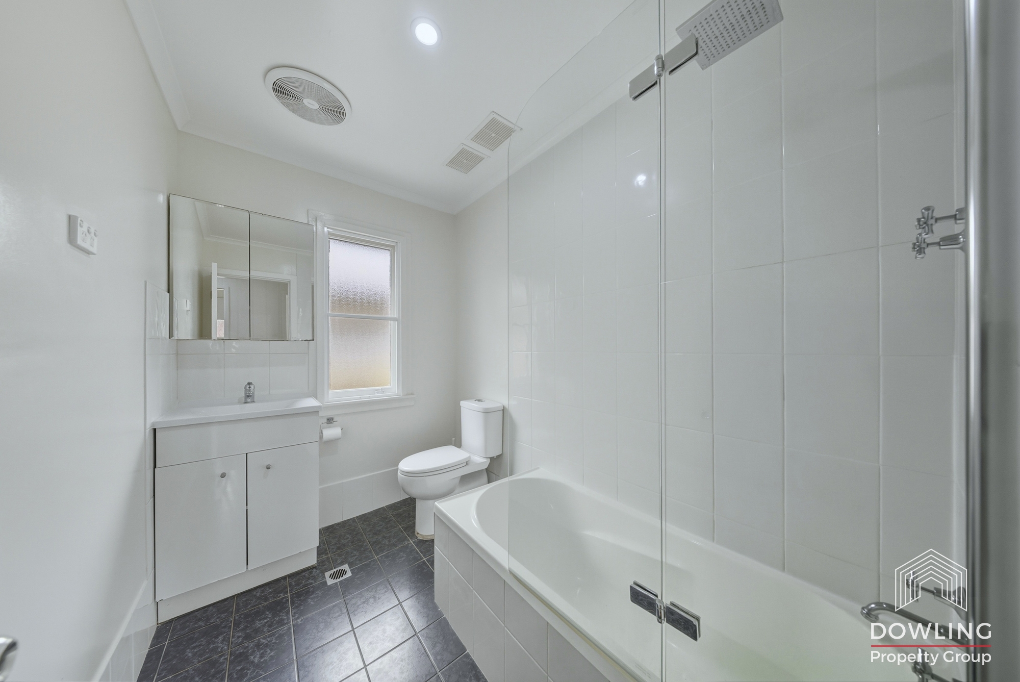 • Neat and tidy bathroom with bath, vanity and toilet