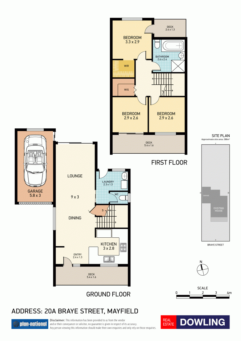 * 3 bedrooms upstairs, main with walk in robe