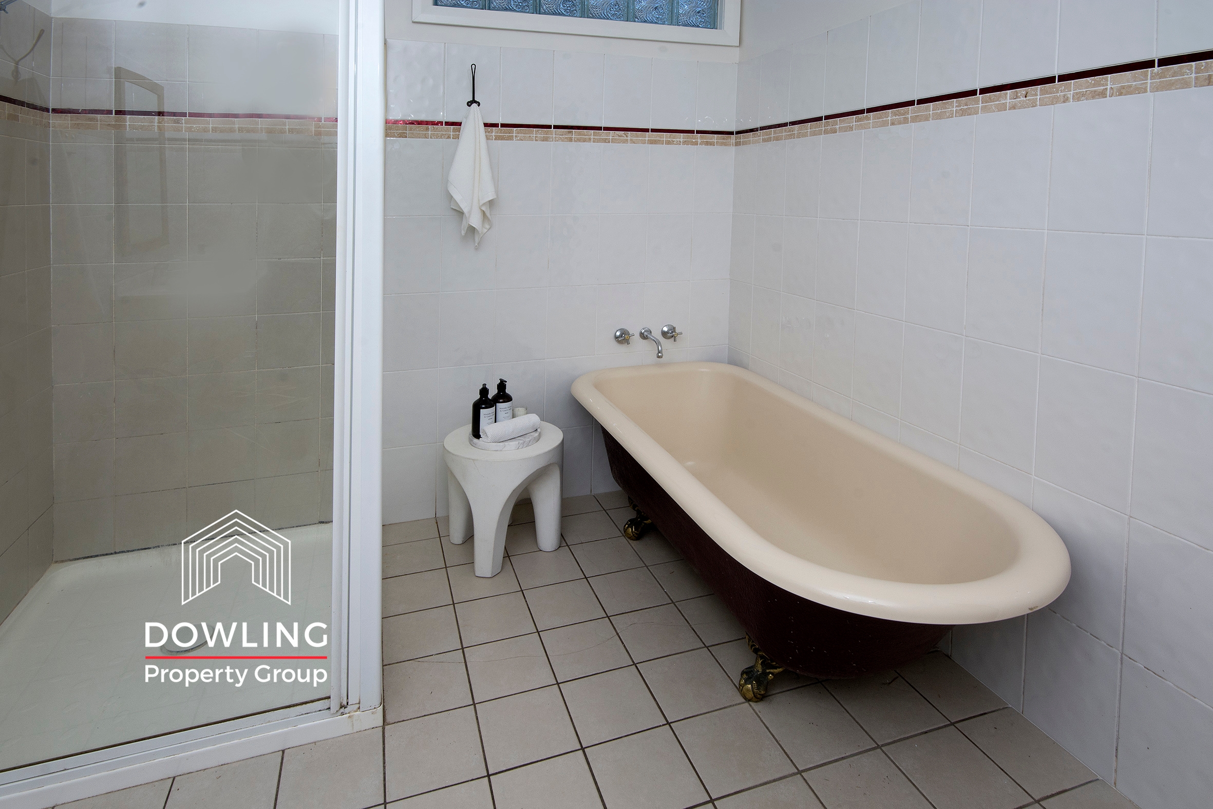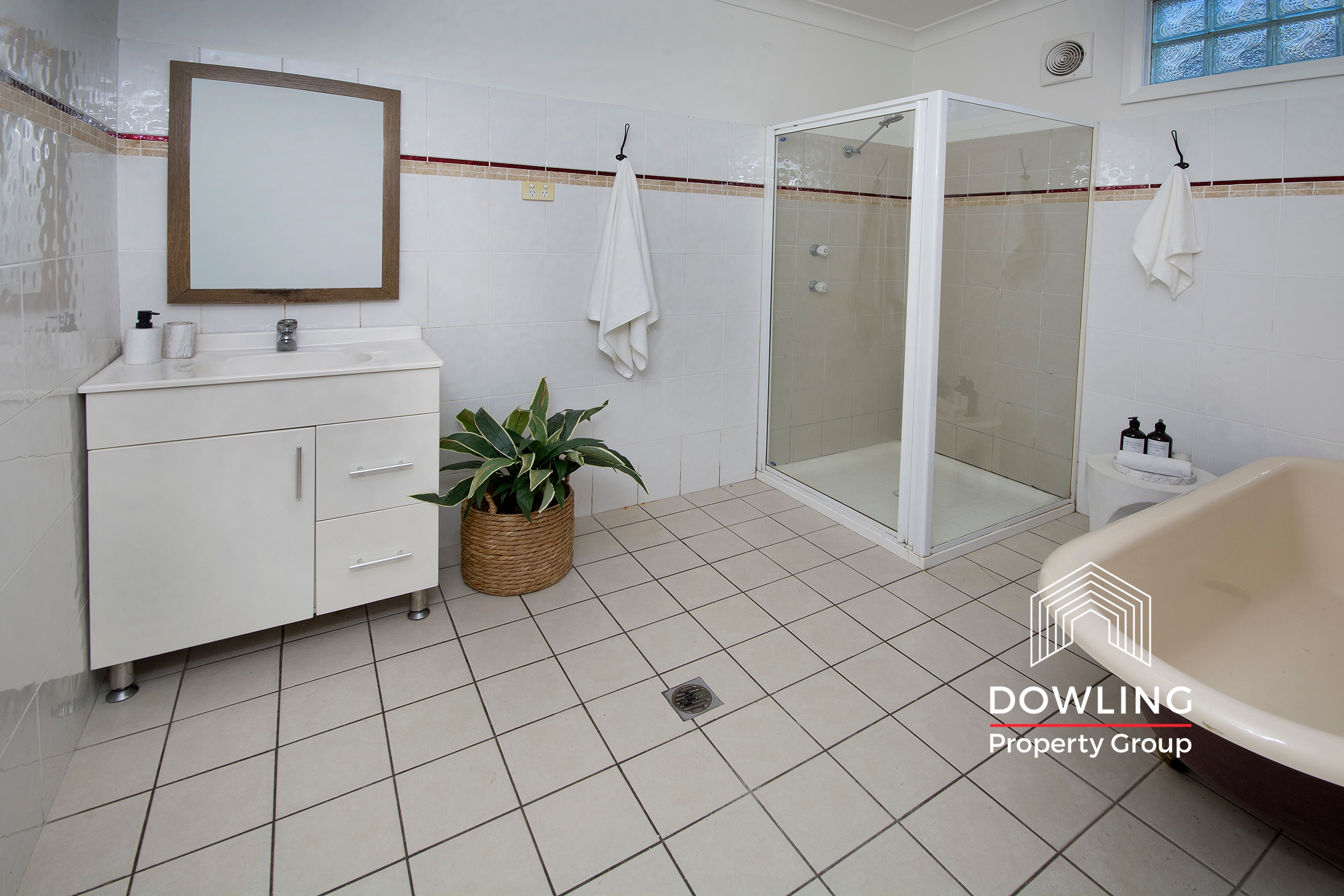 • Spacious bathroom with separate shower and free-standing bathtub