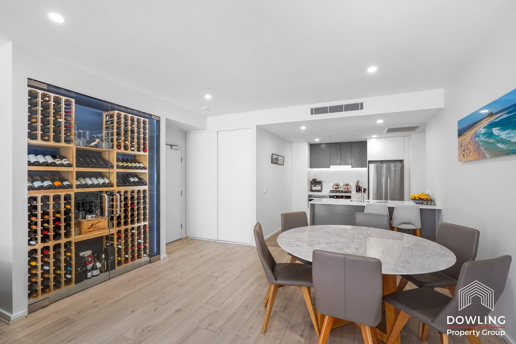 The layout is smart and spacious, offering two bedrooms and two well-appointed bathrooms, the unit features open-plan living, high ceilings, and ducted air conditioning throughout for all-year comfort. You’ll love the modern kitchen gas cooking appliances, dishwasher, breakfast bar, and study nook for working from home or relaxing, and even a private wine cellar to store your favourite drops.