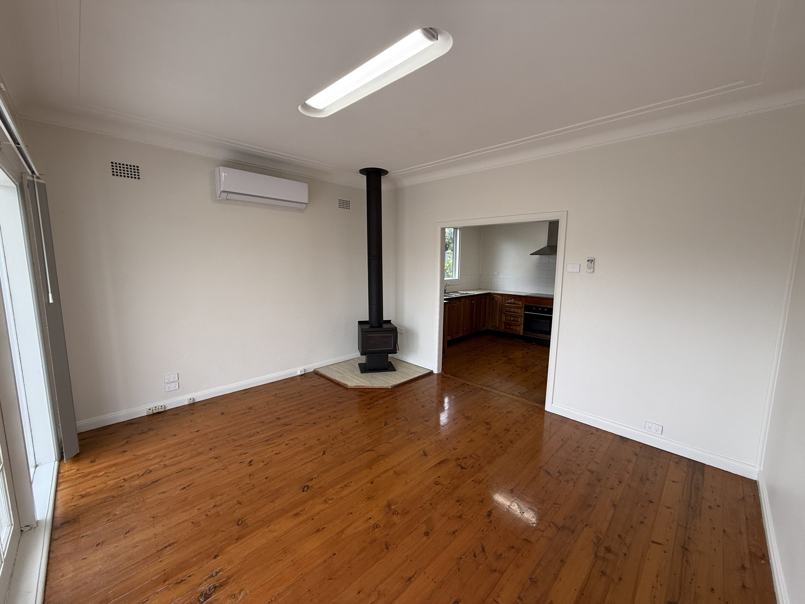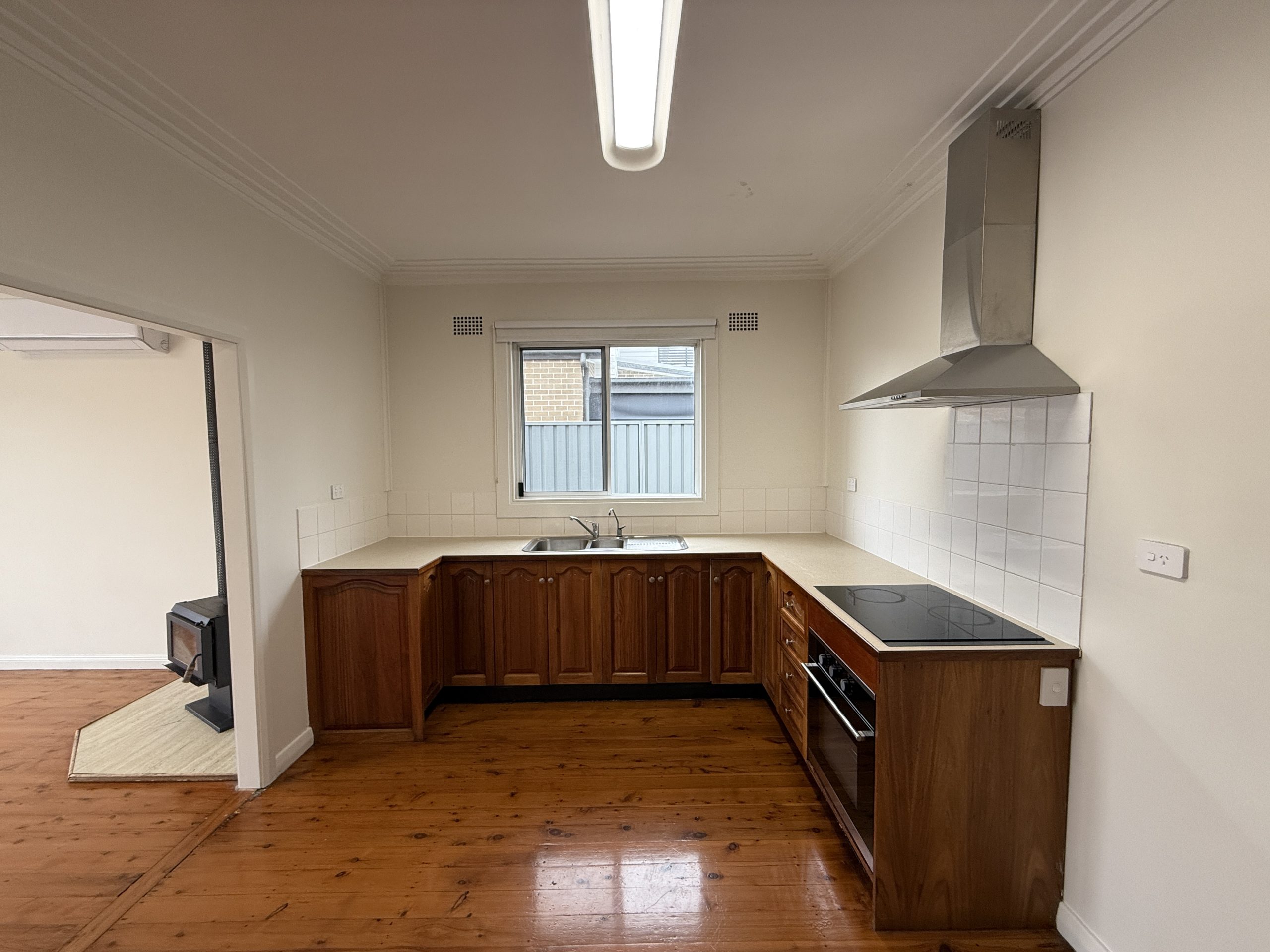 This 3 bedroom half house has a formal lounge room that has polished timber floors, combustion fire and French doors to the front fenced courtyard. Lovely timber eat in kitchen. There are built-in robes in two of the bedrooms and a Modern bathroom with laundry area.