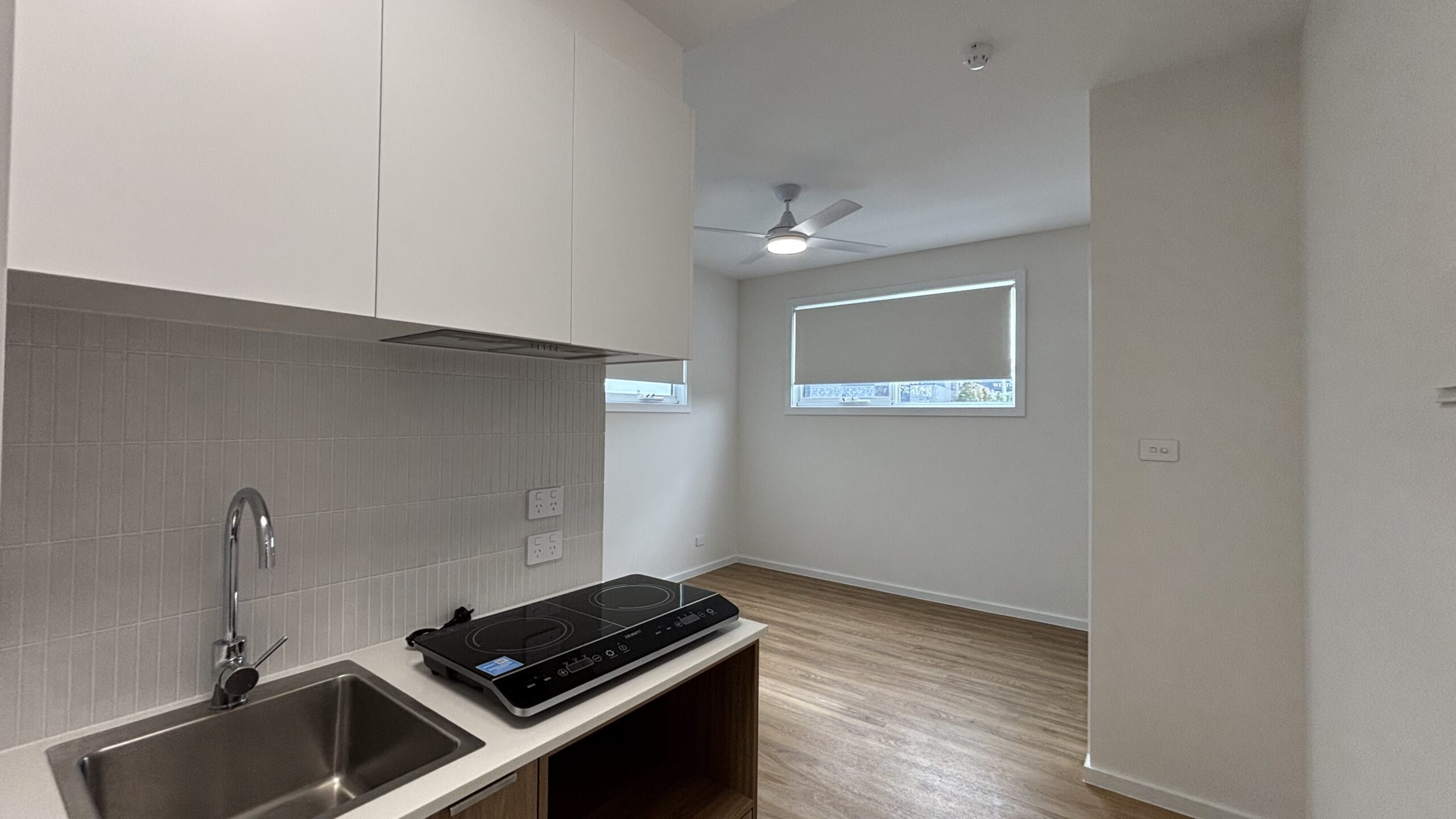 Each studio features a stylish kitchenette with quality appliances, including a dishwasher and a portable induction hotplate. Tenants will need to supply their own cookware suitable for the induction hotplate.